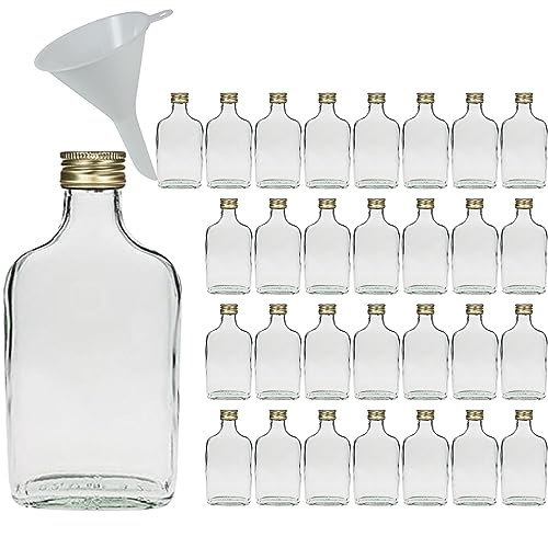 Viva Haushaltswaren - 32 x tomma glasflaskor på 100 ml med guldfärgat skruvlock, kan användas som små spritflaskor och likörflaskor (inklusive tratt Ø 5 cm)