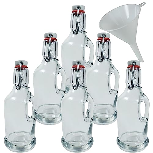 Viva Haushaltswaren – 6 x glasflaskor 500 ml med strykförslutning av porslin för fyllning, kan användas som mjölk, juice och likörflaska (inklusive tratt Ø 9,5 cm)