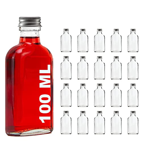 Casavetro Klart Skruv Top Tomma glasflaskor 100 ml - Återanvändbara Påfyllningsbara Twist Av Lock - lufttät Metall Lock för Kombucha Ölbryggning Gin Olja Vinäger Öl Vin Cider, Vodka Soda och Vatten (20 x 100 ml)
