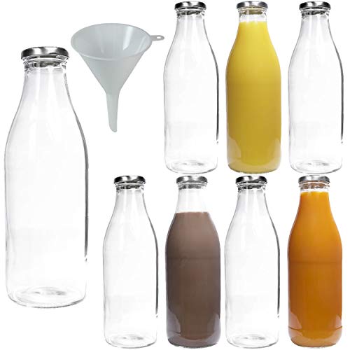 Viva Household waren # 62265# 8 flaskor bred hals 1 liter mjölk/juiceflaskor med hälltratt 9 cm diameter glasflaskor med skruv, transparent, 8 x 8 x 25 cm