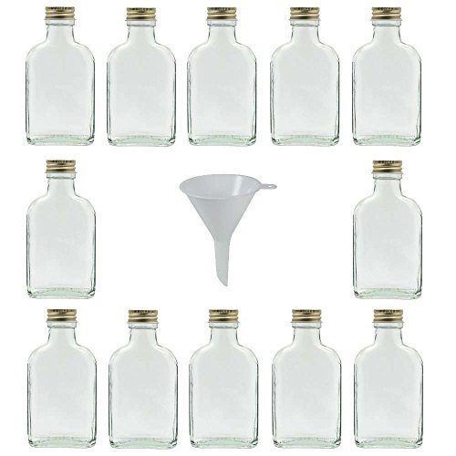 Viva Haushaltswaren – 12 x små glasflaskor på 100 ml med skruvlock, lämplig som plunta, snapsflaska och likörflaska (inklusive tratt Ø 7 cm)