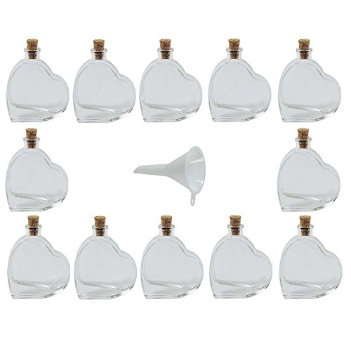 Viva-Haushaltswaren Gabriele Hesse e.K. 12 små glasflaskor 50 ml hjärtformad hjärtflaska med kork inkl. 1 tratt