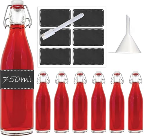 Casavetro Tydligt gång på Översta Tomma glasflaskor 750 ml - Återanvändbara Påfyllningsbara Flip Top Propp - Tät gummipackning för Ölbryggning Gin Olja Vinäger Öl Vin Cider, Vodka Soda och Vatten (6 x 750 ml)