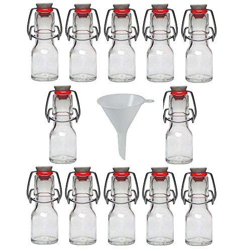 Viva Haushaltswaren Små glasflaskor med svängtopp x 12 för självfyllning inklusive en vit fyllningstratt diameter 7 cm