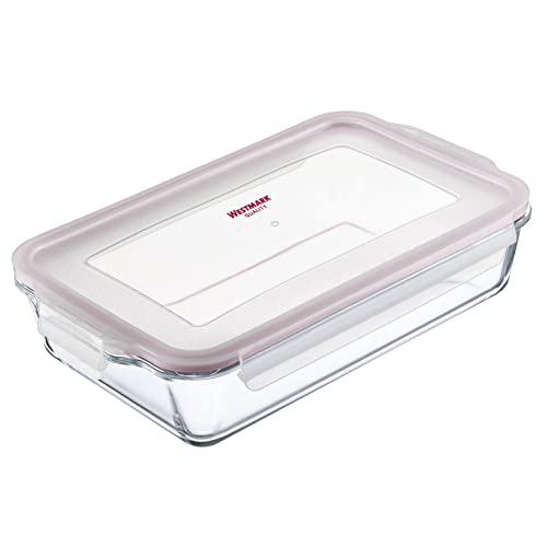 Westmark glasform, Rymmer 2200 ml, Lufttät förslutning, Tål värmning i ugnen och mikron, Glas/silikon/plast, Genomskinlig/röd, 234922E1