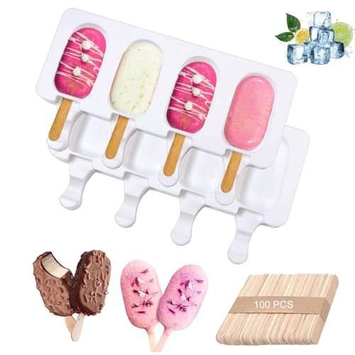 Glassformar silikonformar, pinnglassformar, 2 stycken 4 celler bakform glasspinne, BPA-fri tårta pinnglass bakform, 50 glasspinnar trä, kakform dessertform, glasform