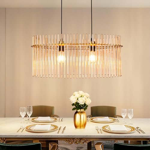Lichtmaler Guld 2-armig Hängande Ljuskälla - E27 Takarmatur med Glasglob Ø 60 cm för Kafé, Bar, Kök, Vardagsrum (utan lampa)