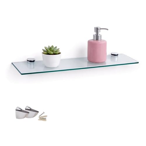 Euro Tische Glas vägghylla i klarglas – glashylla med 6 mm ESG säkerhetsglas – perfekt som badrumshylla/glashylla för badrum – olika storlekar (60 cm)