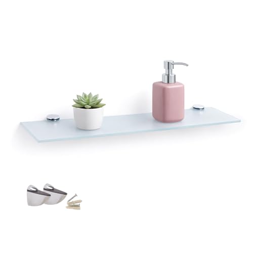 Euro Tische Vägghylla i vitt glas, glashylla för badrum, duschhylla med 6 mm ESG-säkerhetsglas och metallhållare, olika storlekar (50 cm)