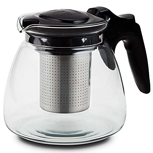 LiRiQi Tekanna glas med tesil av rostfritt stål värmebeständig avtagbar, 950 ml tebryggare glaskanna med lock, glastekanna för svart te, fruktte, grönt te, doftande tepåse