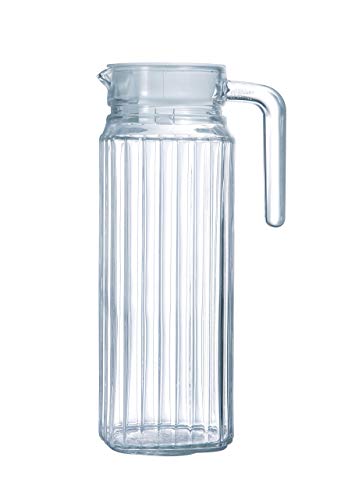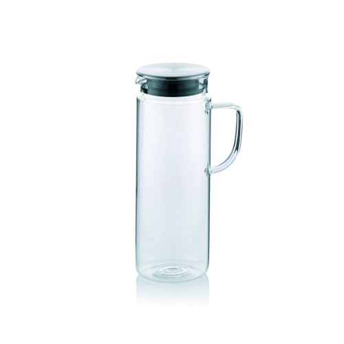 Hisdricus Vattenkanna i glas, vattenkanna 1 liter, glaskanna med lock, perfekt för iste, varmt och kallt vatten, mjölk, kaffe och vin