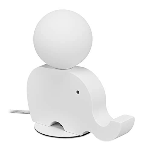 Relaxdays sänglampa för barn- eller barnkammare, trä elefantform, glaskula, 21 x 20 x 10 cm, vit