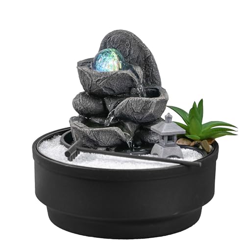 Zen trädgård inomhusfontän, roterande självlysande glaskula, färgglad LED, avslappnande atmosfär dekoration, Zen Garden vit sand, stängd krets bordsfontän, H21 cm - Bogota Zen'Light