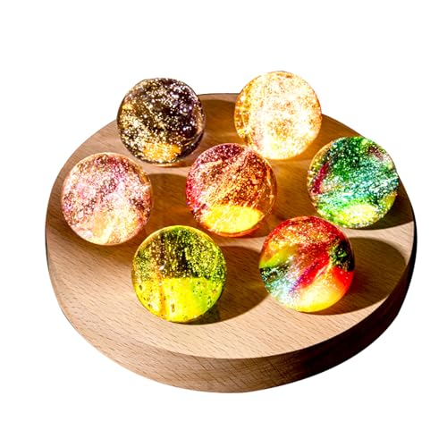 FIYSON 3D-nattlampa i kristall, 40 mm USB-glaskula, 7 stycken färgglada astronomiska stjärnhimmel-LED-nattlampor med träbas för jul/födelsedag astronomigåva