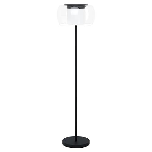 EGLO LED golvlampa Briaglia-c, dimbar Smart Home lampa, vardagsrumslampa i svart metall, glaskula med satinerad cylinder, varmvit-kall vit, RGB