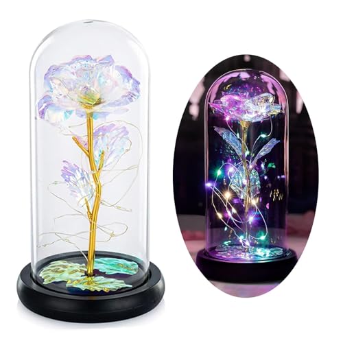 ADAZ 24K evig ros för kvinnor/fru/mormor/flickvän för henne ros blomma konstgjorda rosor i glaskupol med LED-ljusremsa på mors dag alla hjärtans dag, årsdag