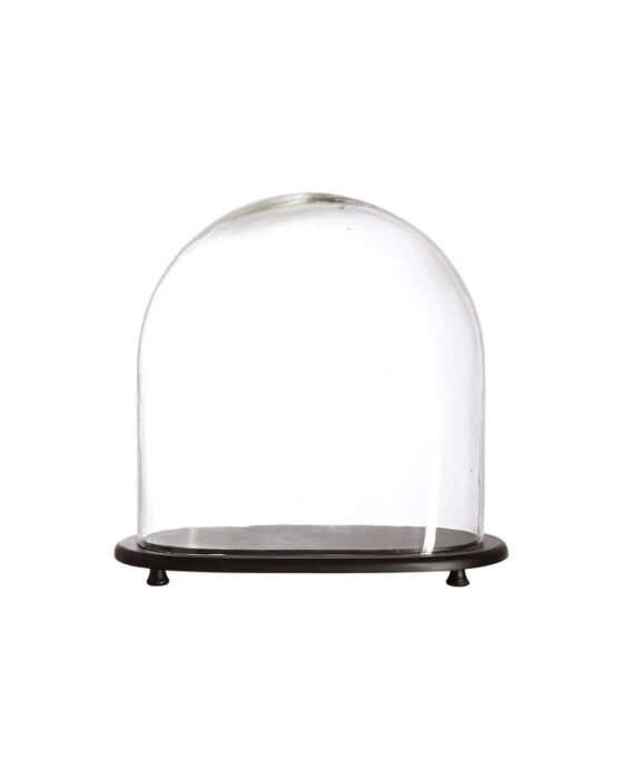 Belle Vous 10 cm Glaskupol Klocka med Svart Träbas - Klar Dekorativ Bordsfodral med Bricka för Värmeljus, Bordsdekorationer och Antiker