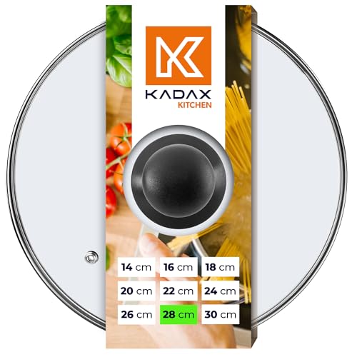 KADAX Glaslock, grytlock av glas, ⌀ 14-30 cm, värmebeständigt lock för kastrull, panna, pannlock med plasthandtag, universallock i olika storlekar (28 cm)