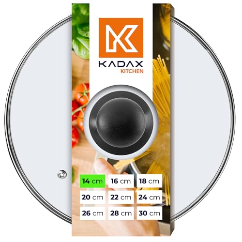 KADAX Glaslock, grytlock av glas, ⌀ 14–30 cm, värmebeständigt lock för gryta, panna, pannlock med plasthandtag, universallock i olika storlekar (14 cm), lock för kastrull