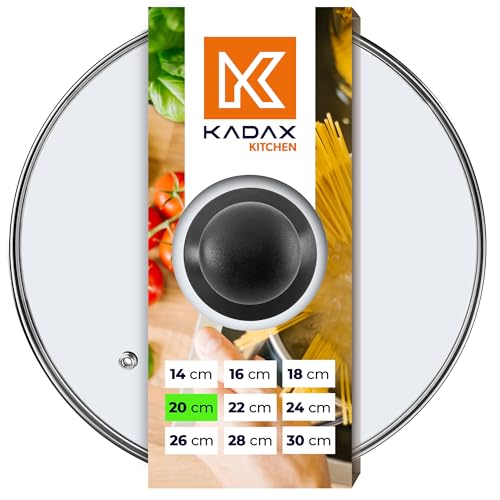 KADAX Glaslock med plasthandtag, värmebeständigt lock för kastrull ⌀ 14-30 cm, stekpanna med ånghål, universallock i olika storlekar, grytlock, rund (20 cm)
