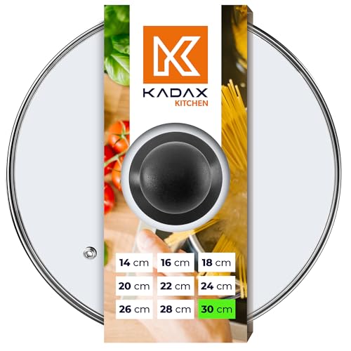 KADAX Glaslock, grytlock av glas, ⌀ 14–30 cm, värmebeständigt lock för kastrull, panna, pannlock med plasthandtag, universallock i olika storlekar (30 cm)