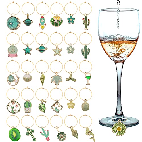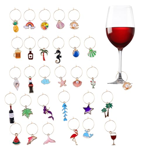 VICDUEKG 31 st vinglas-hängberlocker, glasidentifiering, dryckesmarkeringar, glasmarkör, tema strand, dryckesmarkör, festdekoration för fest, vinglas, vin, cocktail, champagne, Glas