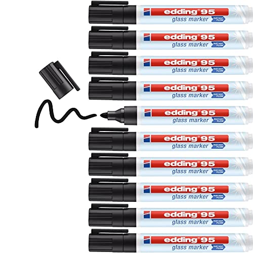 edding 95 glasmarkör – svart – 10 glaspennor – rund spets 1,5–3 mm – tvättbar fönstermarkörpenna – för att skriva och markera på glasytor, fönster, glasskivor, whiteboards – torkbar