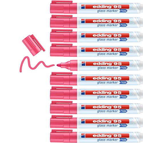 edding 95 glasmarkör – rosa – 10 glaspennor – rund spets 1,5–3 mm – tvättbar fönstermarkörpenna – för att skriva och markera på glasytor, fönster, glasskivor, whiteboards – torkbar