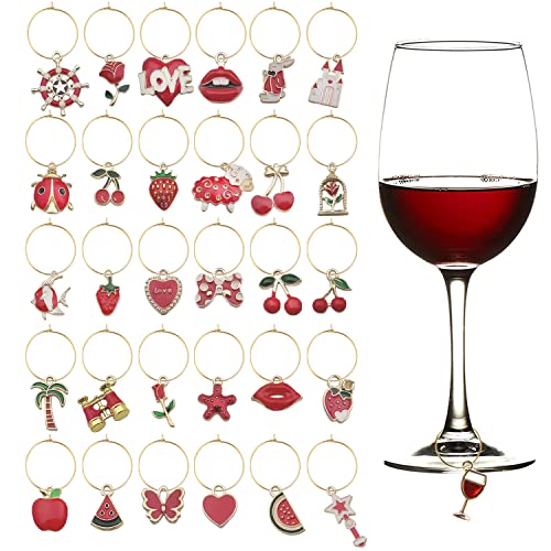 30 Pcs Charms Ringar Markörer Särskilj Champagne Vinglas Hänge Charm Färg Markering Av Glas Cocktail Drycker Markörer Glasmarkör Färgglad Drinkmarkeringsfest (rosa röd)