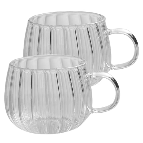 Glasmuggar, pumpa muggar 2 st glas kaffemuggar med handtag vertikal rand pumpa kopp enkel te kopp soppa mugg för kaffe te mjölk juice is tacksägelse gåva