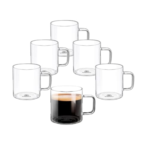 INTIGNIS Eleganta teglas, dricksglas med handtag, 210 ml, glas för varma och kalla drycker, klara koppar för kaffe, espresso, glasmuggar för grönt te, cappuccino, set med 6
