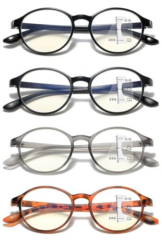 KOOSUFA Runda glasögon progressiva multifokus läsglasögon kvinnor män anti-blått ljus ultralätt TR90 ram retro läshjälp arbetsplatsglasögon 1,0 1,5 2,0 2,5 3,0 3,5 4,0, Set med 4 färger, 2.5