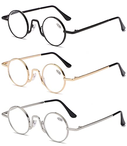 KOOSUFA Runda läsglasögon blåljusfilter kvinnor män liten metall ultralätt retro nördglasögon läshjälp syn hjälp full kant glasögon anti-trötthet glasögon med styrka 1,0 1,5 2,0 2,5 3,0 3,5 4,0, Set med 3 färger, 2.5