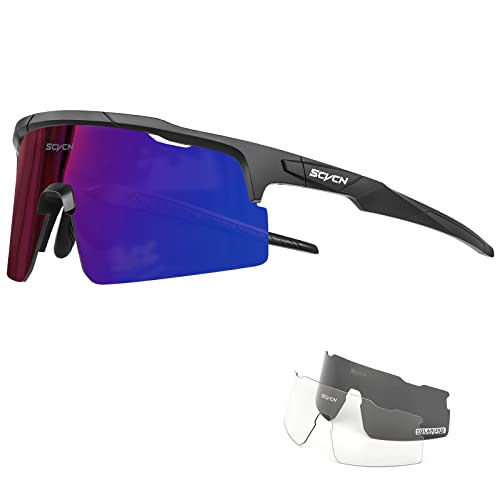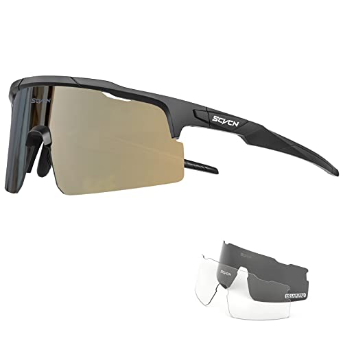 SCVCN Polariserade cykelglasögon sport solglasögon cykelglasögon med 3 utbytbara glas för kvinnor män cyklist glasögon löpning volleyboll tennis bilkörning fiske softboll 11 svart brun