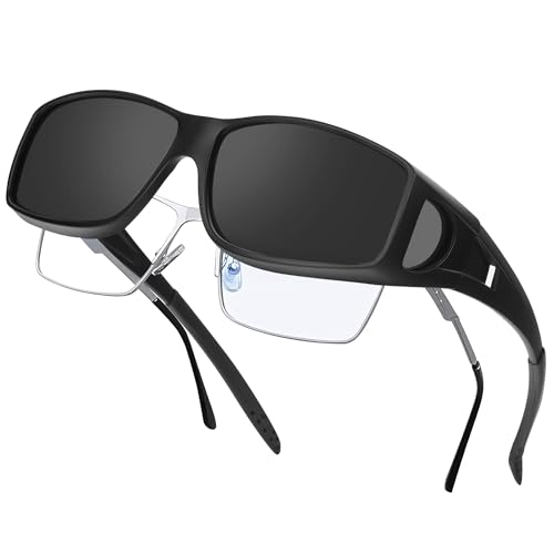 Nlieanuc Polariserade Solglasögon för Glasögonbärare - UV400 Wrap Around Glasögon med Bländskydd För Män & Kvinnor vid Bilkörning, Fiske & Sport (Modern Svart)