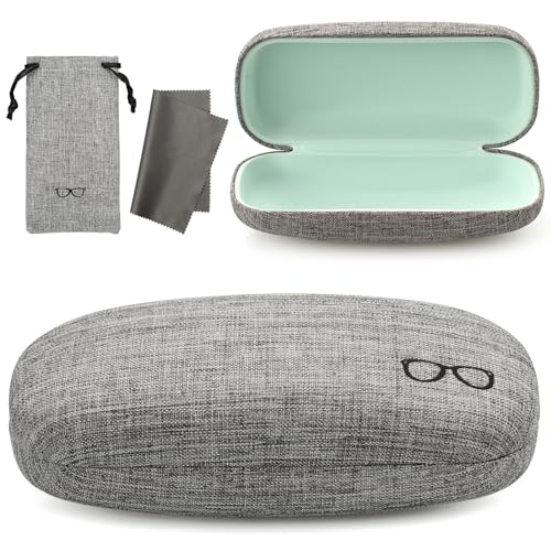 Vemiss hårt skal glasögon fodral mjukt linne tyger bärbara glasögon solglasögonbox, Grått, L