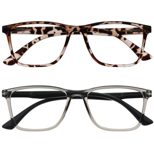 Opulize Se 2 Pack Blå Ljusblock Glasögon Läsglasögon Svart Brun Dator Anti Reflex Män Kvinnor BB9-12, Svart/Brun, 0,00 Diottrie