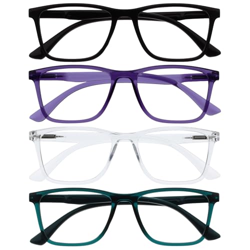 OPULIZE NYX Blåljusblockerande glasögon – anti-bländning dator- och spelglasögon – 4-pack – UV- och ögonskydd – rektangulär ram – svart lila klar turkos – män kvinnor, Svart/lila/klar/turkos – 4
