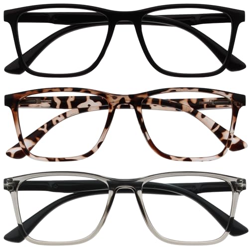 JM 3 Pack dam läsglasögon, fyrkantiga glasögon blått ljus dator view glasögon, 3-pack blandade färger, 135 Millimeter