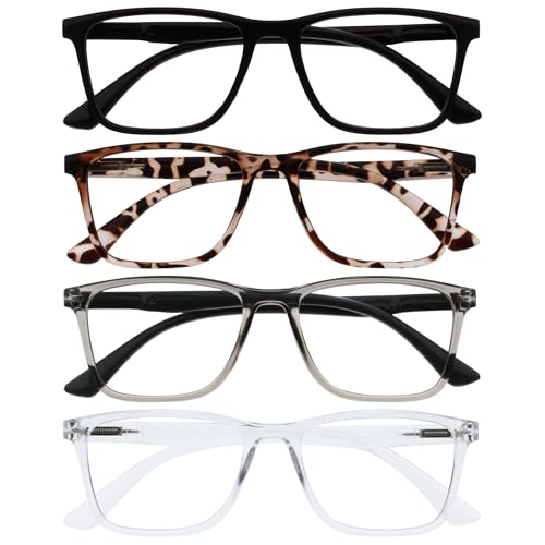 TERAISE 4 st läsglasögon mode anti-blått ljus kvalitetsläsare diamantskärning design läsglasögon dam/herr anti-trötthet för män dator/mobiltelefon glasögon (2,0X)