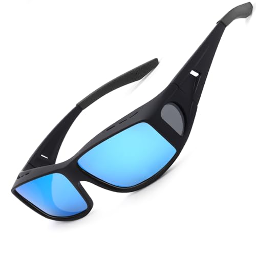 LVIOE Polariserad passform över solglasögon för män kvinnor, clip-on over glasögon solglasögon med UV 400-skydd, A10 Svart/Blå