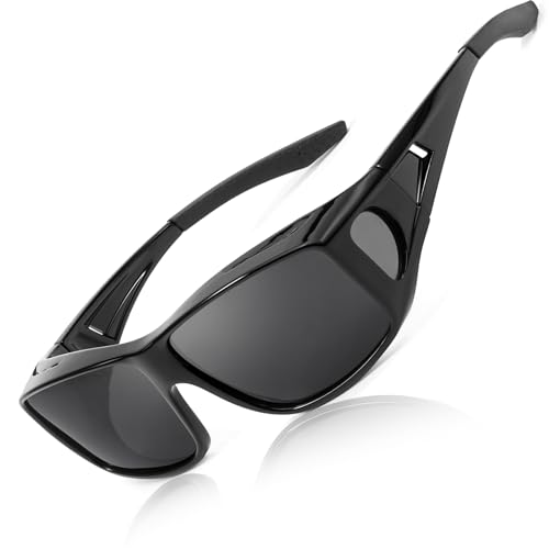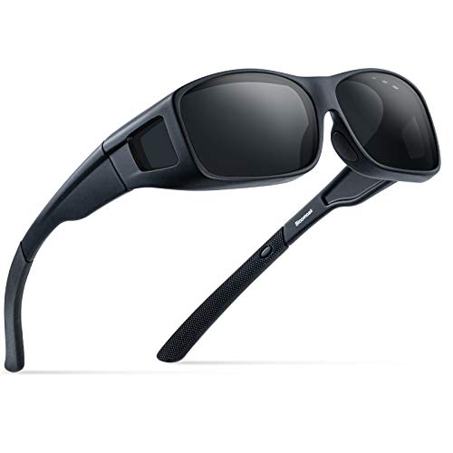 Bloomoak Passar över receptbelagda glasögon, 100 % UV-skydd, anti-bländning, omslutande solglasögon, TR90, ram för män och kvinnor, Svart, Medium