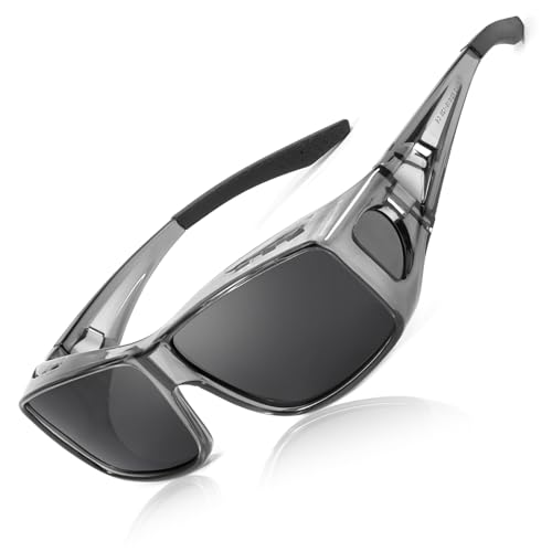 LVIOE Polariserad passform över solglasögon för män kvinnor, clip-on over glasögon solglasögon med UV 400-skydd, L-grå grå grå