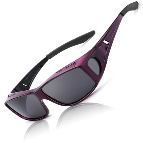 LVIOE Polariserad passform över solglasögon för män kvinnor, clip-on over glasögon solglasögon med UV 400-skydd, A01 Lila/Grå