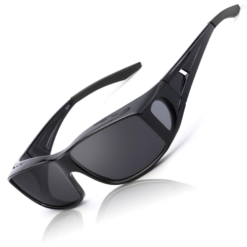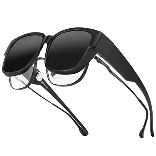 LVIOE Polariserad passform över solglasögon för män kvinnor, clip-on over glasögon solglasögon med UV 400-skydd, L-svart grå