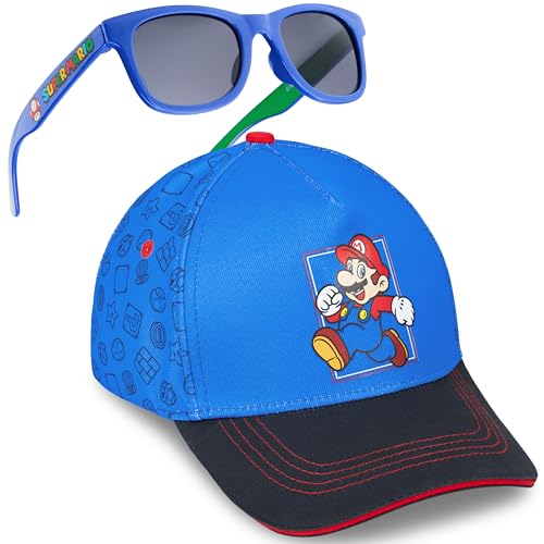 Get Trend Truckerkeps solglasögon pojke tonåring justerbar rem glasögon UV-skydd tillbehör semester presentidé, Mario Blue Set, 4-12 ans