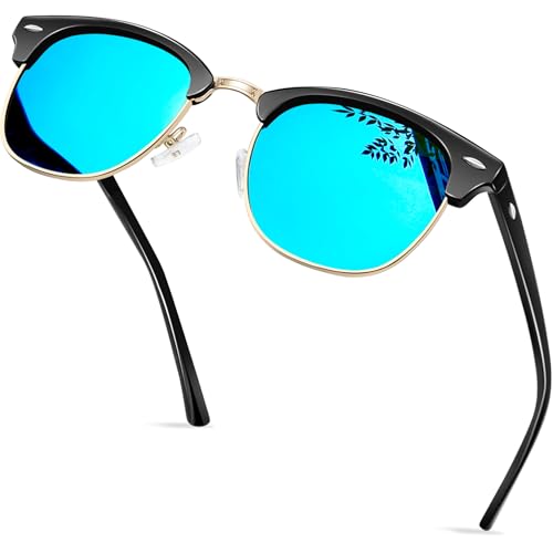 KANASTAL Solglasögon för Män med Halvrandiga Polariserade Sol Glasögon Kvinnors Klassiska UV400 Skydd Mäns Fyrkantiga Retro Class Blå