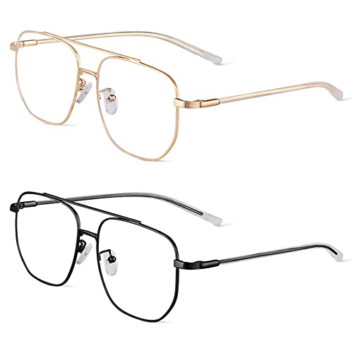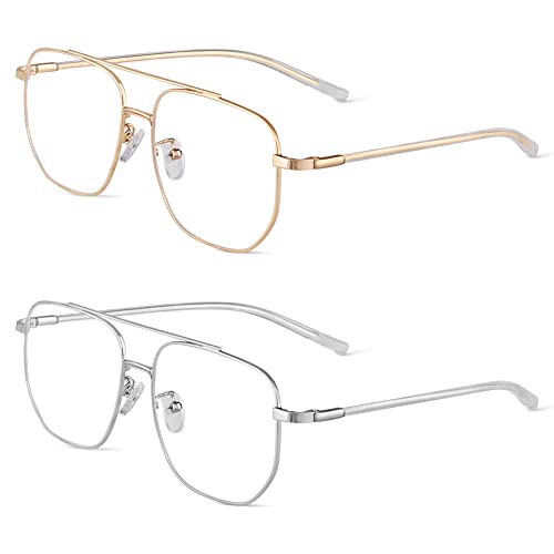 ACWOO Blåljusfilter Glasögon, Set Om 2 Polygoner, Anti-Blått Ljus, Gaming och Mode Glasögon, Blått Ljusblockerande, Retro Utan Styrka för Kvinnor Män (Guld + Silver)