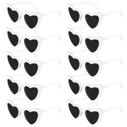 SelfTek 10-pack hjärta solglasögon, vita vintage hjärtformade glasögon retro kärlek glasögon kattögon multipack mode funky glasögon för kvinnor möhippa