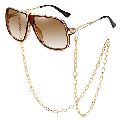 Long Keeper Fyrkantiga solglasögon för män kvinnor, klassisk retro solglasögon guldram pilot glasögon vintage mode UV400 linser, Leopardram